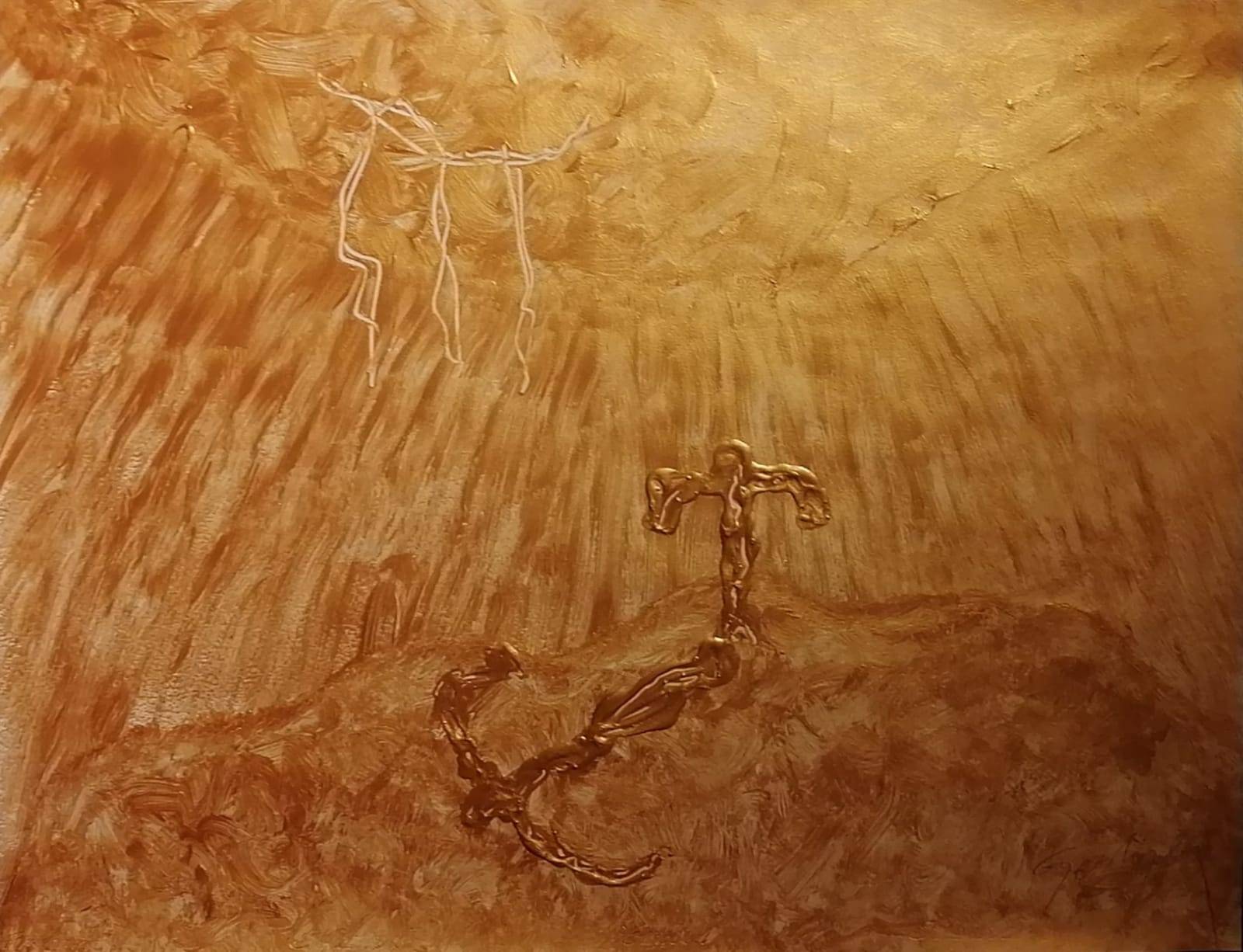Con sus dorados a lo “Geo Ripley”, sus rojos únicos, los negros profundos y los blancos etéreos que predominan en su obra pictórica, con sus espirales y chorreados cargados con la luz de las esencias, con su criterio de arte único al servicio de todos y donde el todo está presente, con su San Miguel y su puerta del Perdón, nos espera en este encuentro con su pueblo en un momento de plena lucidez y vigencia. Con su alma joven de experiencias, se nos acerca para que podamos descubrir sus secretos a través de este homenaje a su valor y trascendencia.