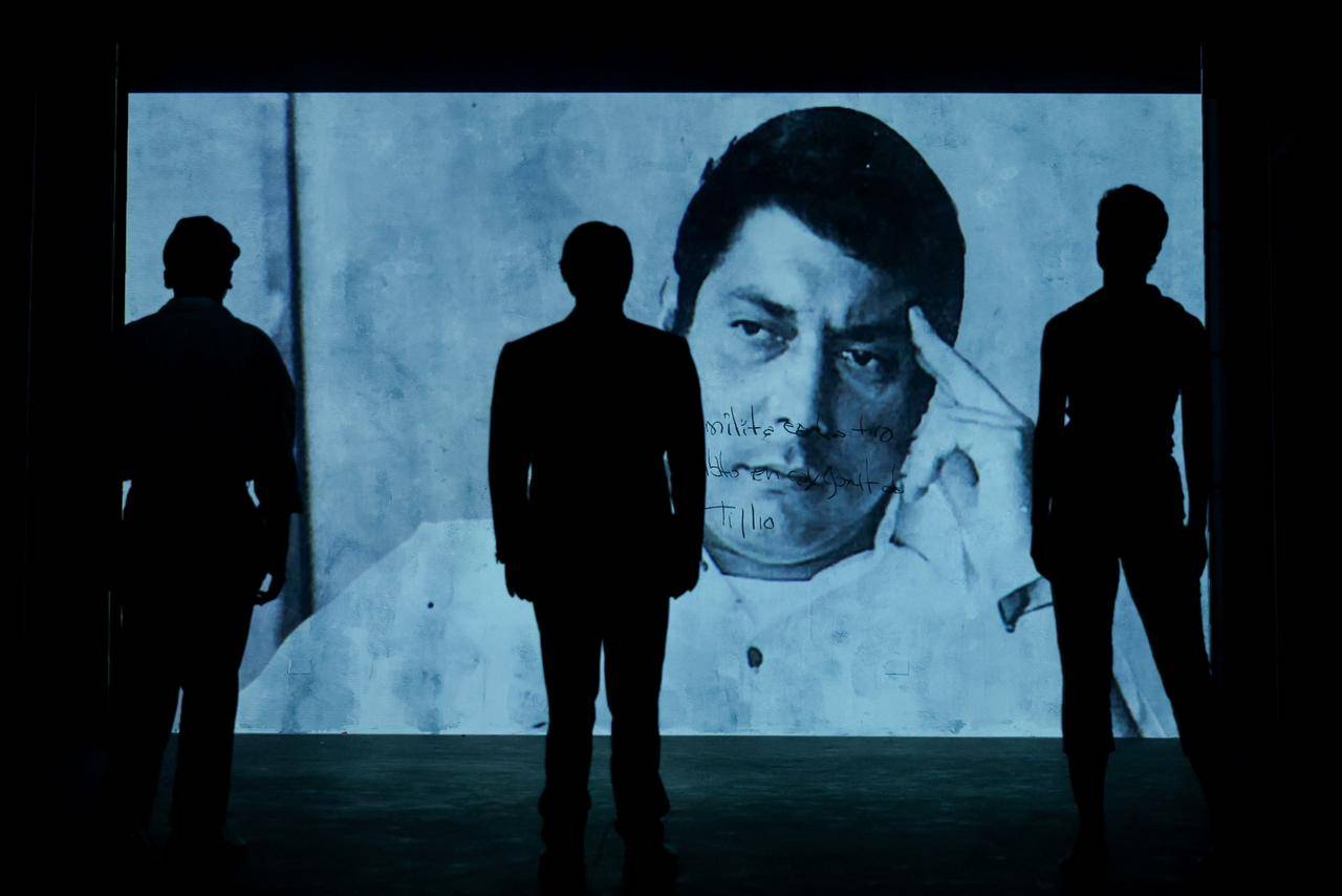 La aguda veteranía del director Manuel Chapuseaux añade al texto tres poemas y números de danza y actuación gestual : María Emilia García Portela y Erick Roque que complementan el rol central de Francis Cruz, que sigue creciendo en caracterización teatral su trayectoria, cuando aún nos resuena su actuación en El Gallo, espectáculo unipersonal tan atrevido como desafiante en torno a la figura del doctor Balaguer, para ahora encarnar el poeta, el revolucionario, el publicista y el extraordinario narrador firmante de este cuento.