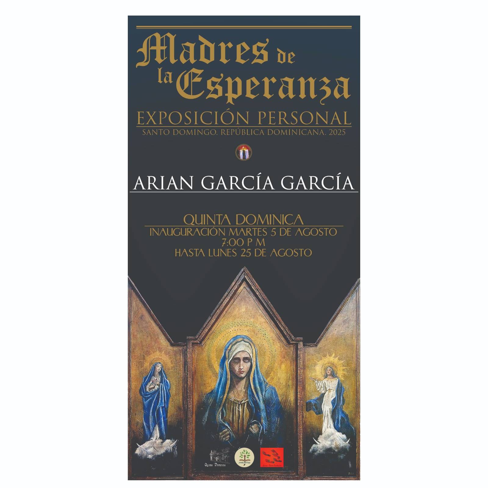El 5 de agosto de 2025, a las 7:00 de la noche presentará, por segunda vez, sus trabajos en la Quinta Dominica de Santo Domingo, “Madres de la esperanza”, donde rinde un homenaje integral a la mujer, representando a las madres de todos los seres humanos, a la Virgen madre de Dios