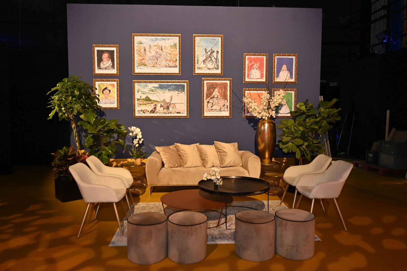 El ambiente del evento reforzó el carácter simbólico del homenaje: desde la explanada del Teatro Real iluminada con los colores de la bandera dominicana, hasta una escenografía interior inspirada en la piedra larimar. Las obras de Cestero acompañaron el recorrido de los invitados por las áreas del recinto, mientras la velada fue amenizada por la música del artista dominicano Manny Cruz, creando una experiencia cultural que celebró el arte, la identidad y el orgullo nacional.