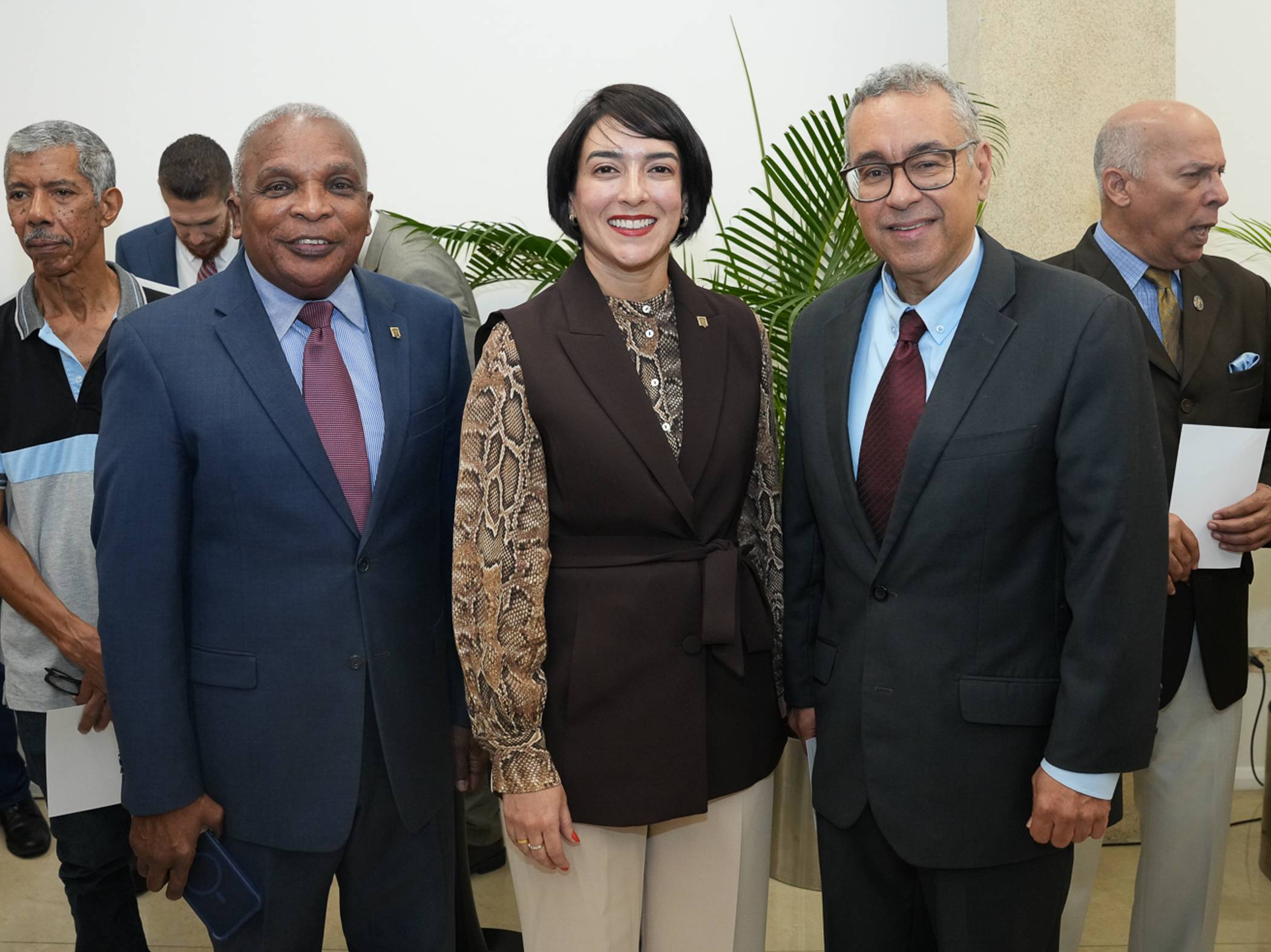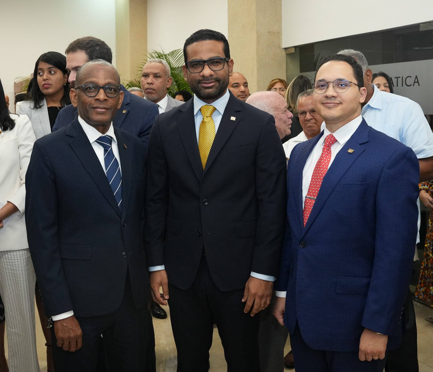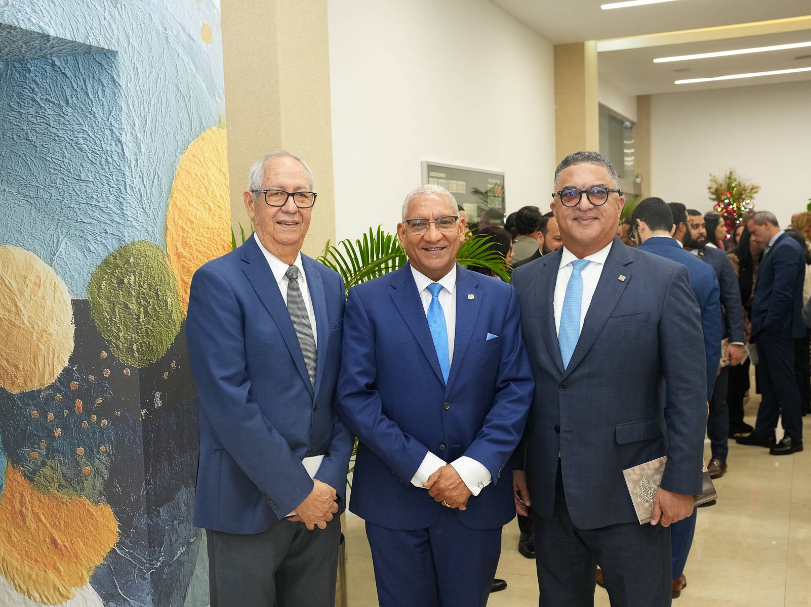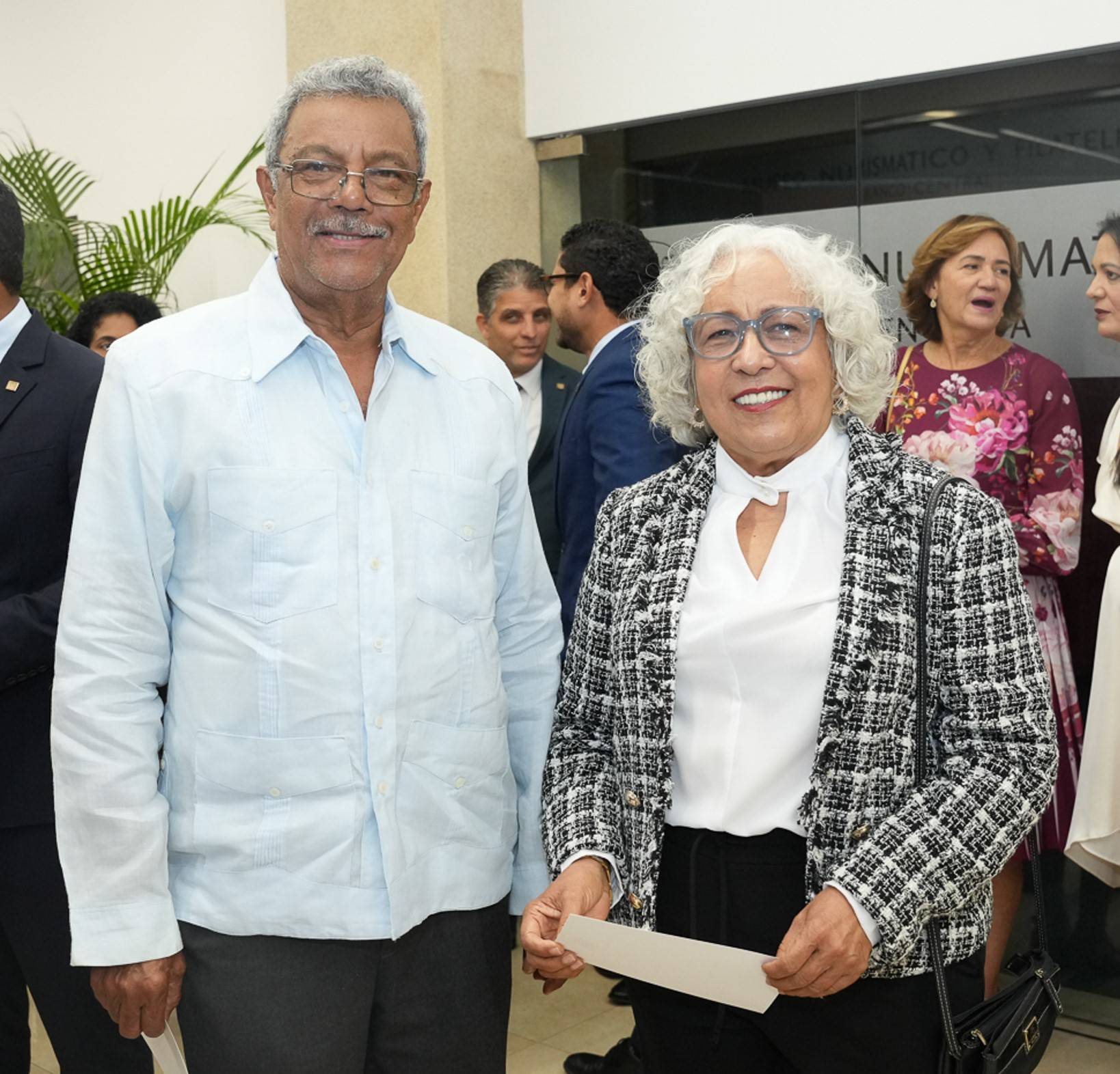 El gobernador estuvo acompañado por el miembro de la Junta Monetaria, Arturo Martinez Moya; la vicegobernadora, Clarissa de la Rocha de Torres; el gerente, Ervin Novas Bello; el asesor económico de la Gobernación, Julio Andújar; el subgerente cultural, José Alcántara Almánzar; así como demás subgerentes, asesores, directores y consultores del Banco Central.