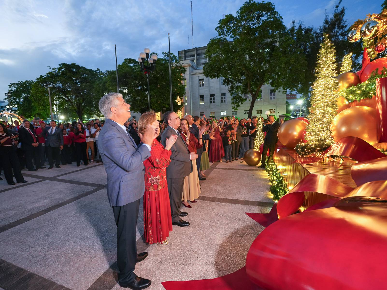 El encendido estuvo encabezado por el gobernador, Héctor Valdez Albizu, quien expresó que los allí reunidos son “amante de las tradiciones, entusiastas de las luces navideñas, gente cautivada por las ilusiones que florecen en estos días, que se emociona con la sonrisa de los niños, que disfruta de la familia, y que entona un villancico con la emoción compartida, en momentos que se graban en nuestra memoria”.
