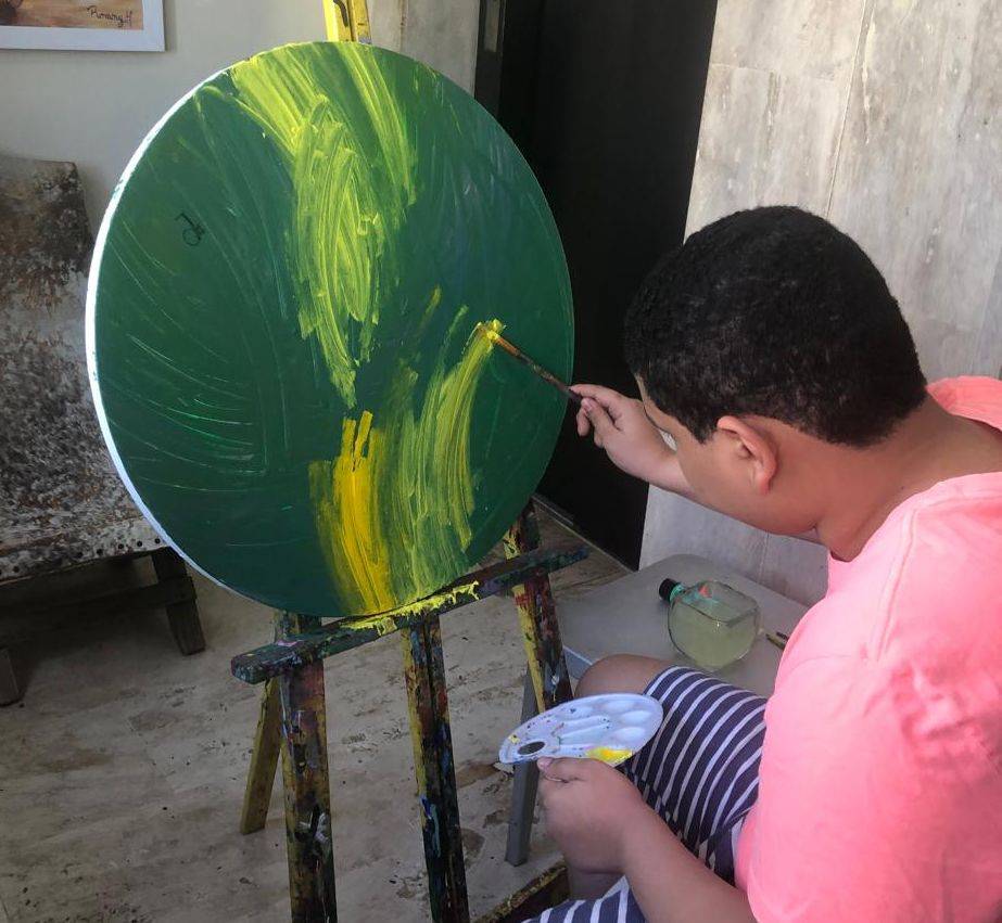 Fernando Gabriel es un joven artista dominicano con la condición de autismo. Se expresa a través de pinturas y dibujos, donde comunica su mundo interior. De la magia de sus manos brotan las esencias de los delfines, el misterio de las profundidades de un mar que hace suyo, la explosión de las galaxias en constante formación.
