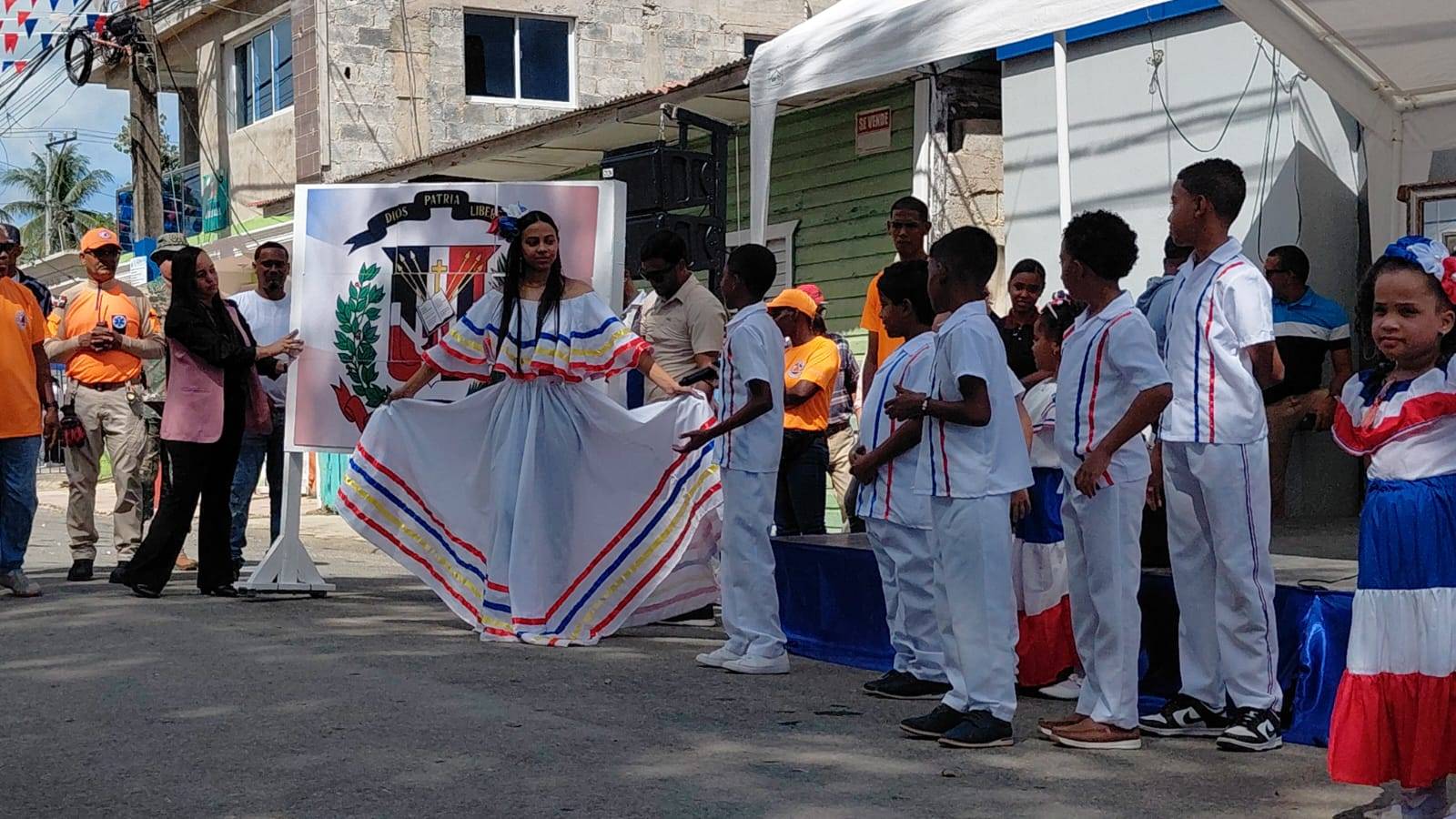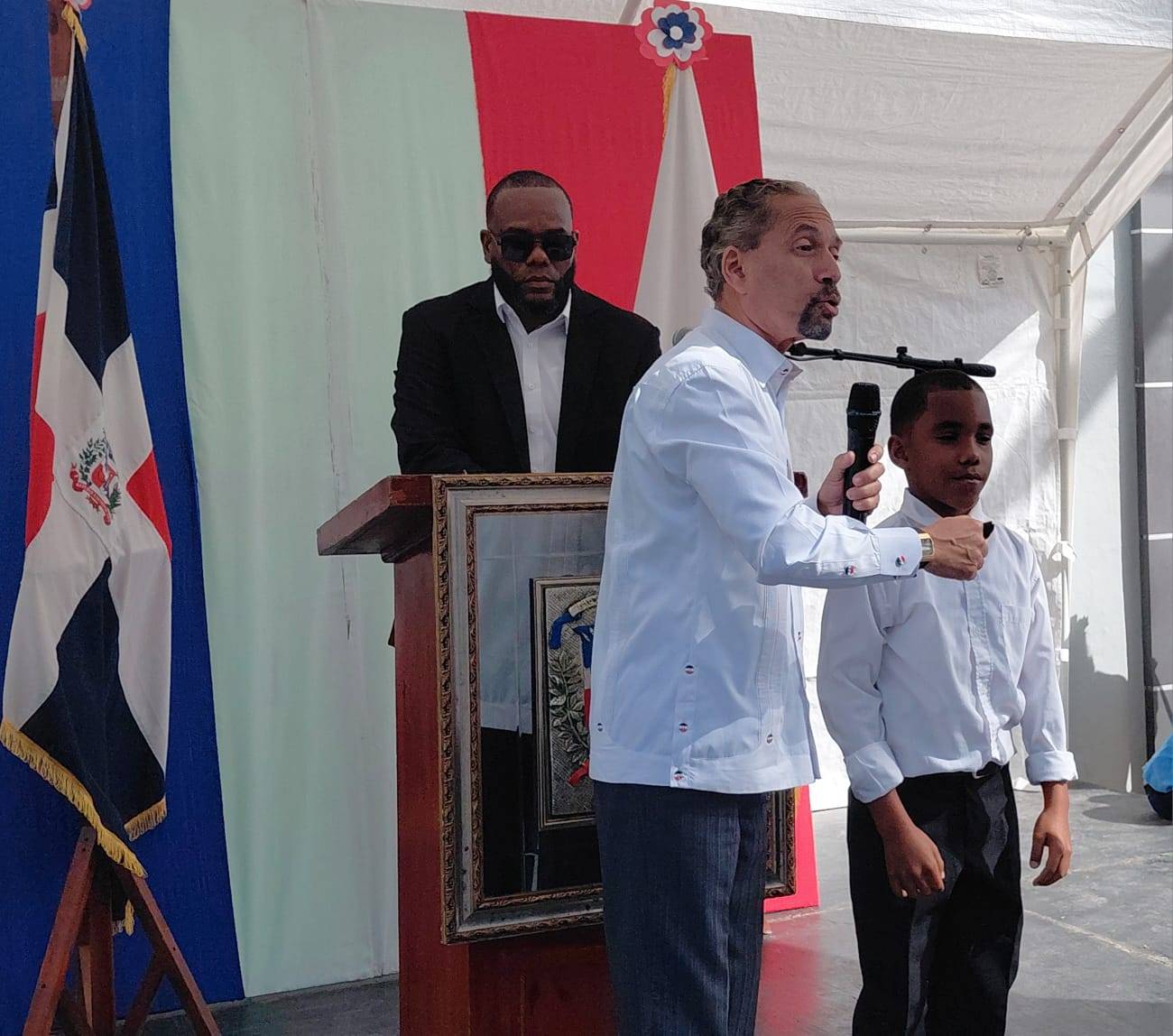 Las palabras de bienvenida estuvieron a cargo de Juan Rafael Ventura Jiménez, alcalde municipal de San José de Los Llanos, quien estaba lleno de emoción por el espíritu y fervor patriótico que reinaba en el municipio. También hizo uso de la palabra Yovanis Baltazar Núñez, gobernadora de San Pedro Macorís y Roberto Ángel Salcedo, ministro de Cultura. Al acto se dieron cita Rafaela Alburquerque, ex presidenta de la Cámara de Diputados, así como directores regionales y del distrito escolar.