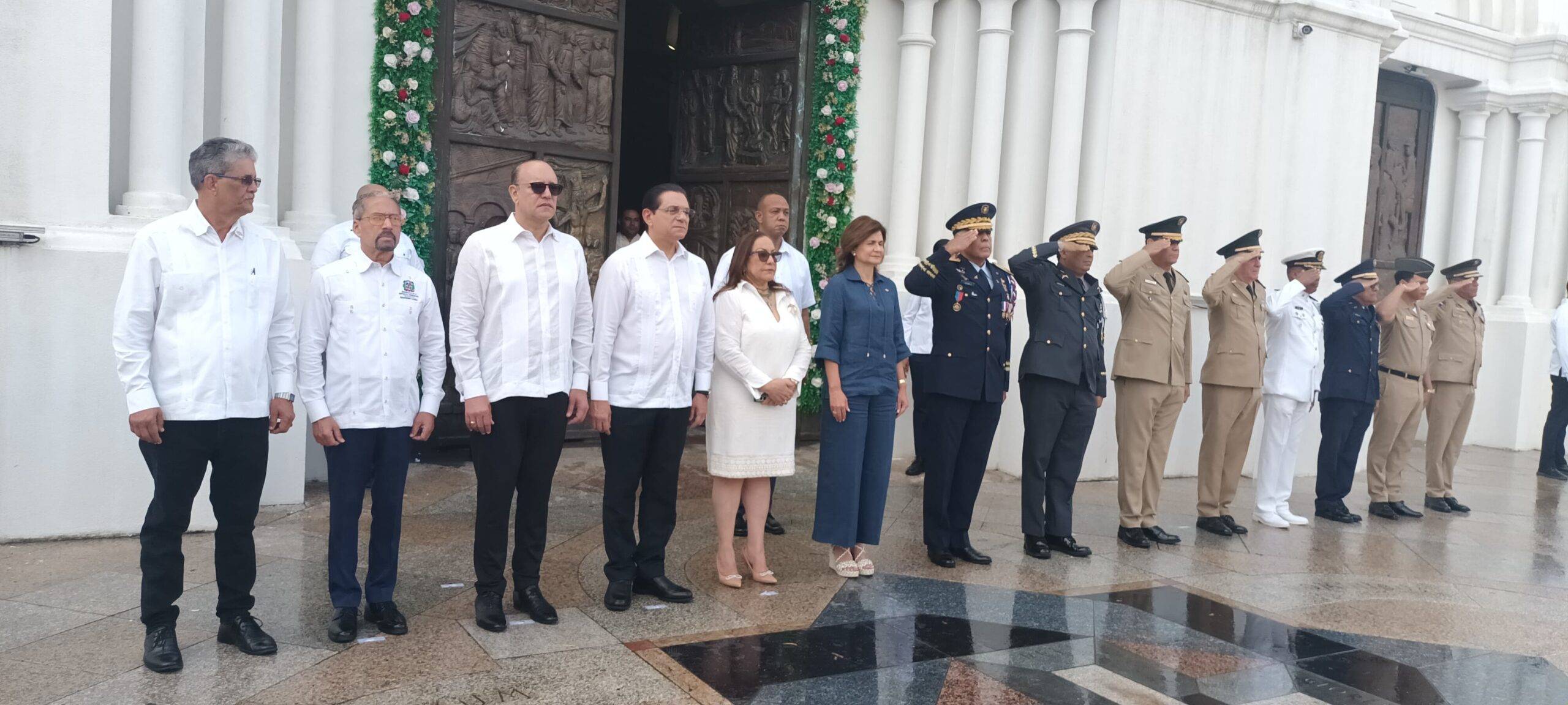Autoridades civiles y militares antes de participar en el oficio religioso.