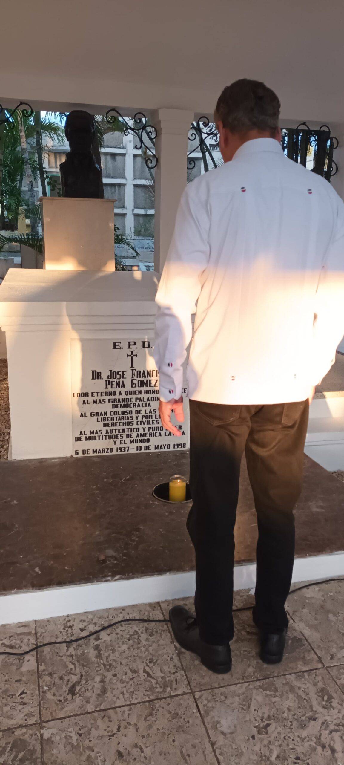 La solemnidad celebratoria del 88 aniversario del nacimiento de Peña Gómez, inició a las 8:00 de la mañana con el izamiento de la Bandera dominicana y la interpretación del Himno Nacional a seguidas del ritual de depósito de ofrendas florales en el panteón del cementerio Cristo Redentor, donde reposan sus restos mortales.