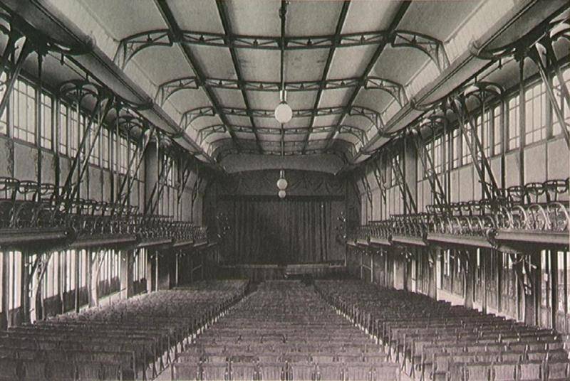 altura, y entre sus dependencias tenía un salón de actos con capacidad para 1500 personas, oficinas, cafetería y sala de juegos. La decoración de sus lámparas se inspiraba en flores y otros motivos naturales.