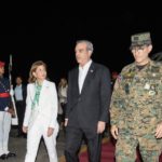 Abinader fue recibido por la vicepresidenta Raquel Peña; el ministro de Defensa, teniente general Carlos Luciano Díaz Morfa, ERD; el jefe de la Fuerza Aérea, el mayor general piloto Leonel Amílcar Muñoz Noboa, FARD y el comandante de la Guardia Presidencial, general de Brigada Guillermo Caro Cruz, ERD, indica una nota de la Presidencia.