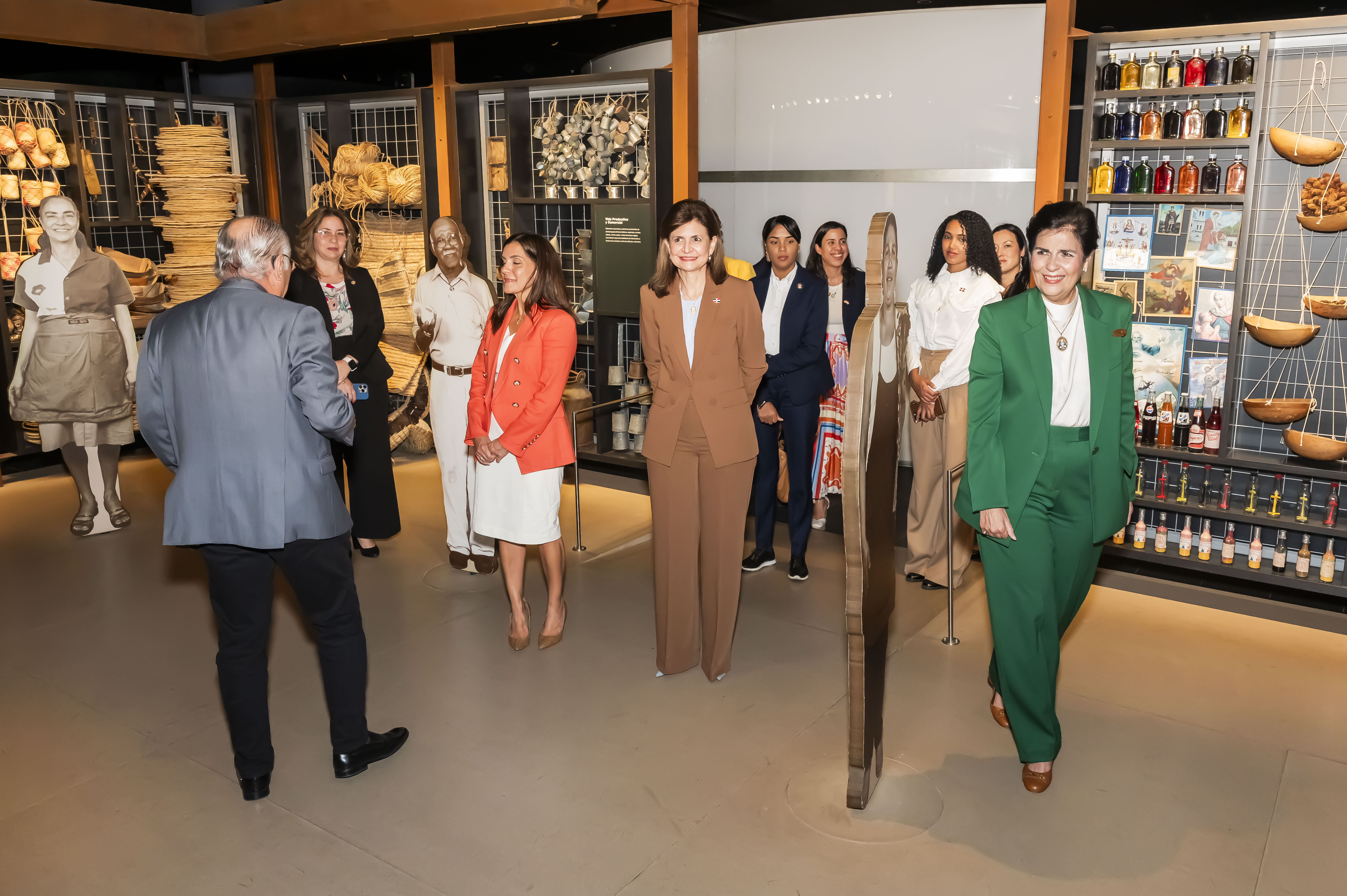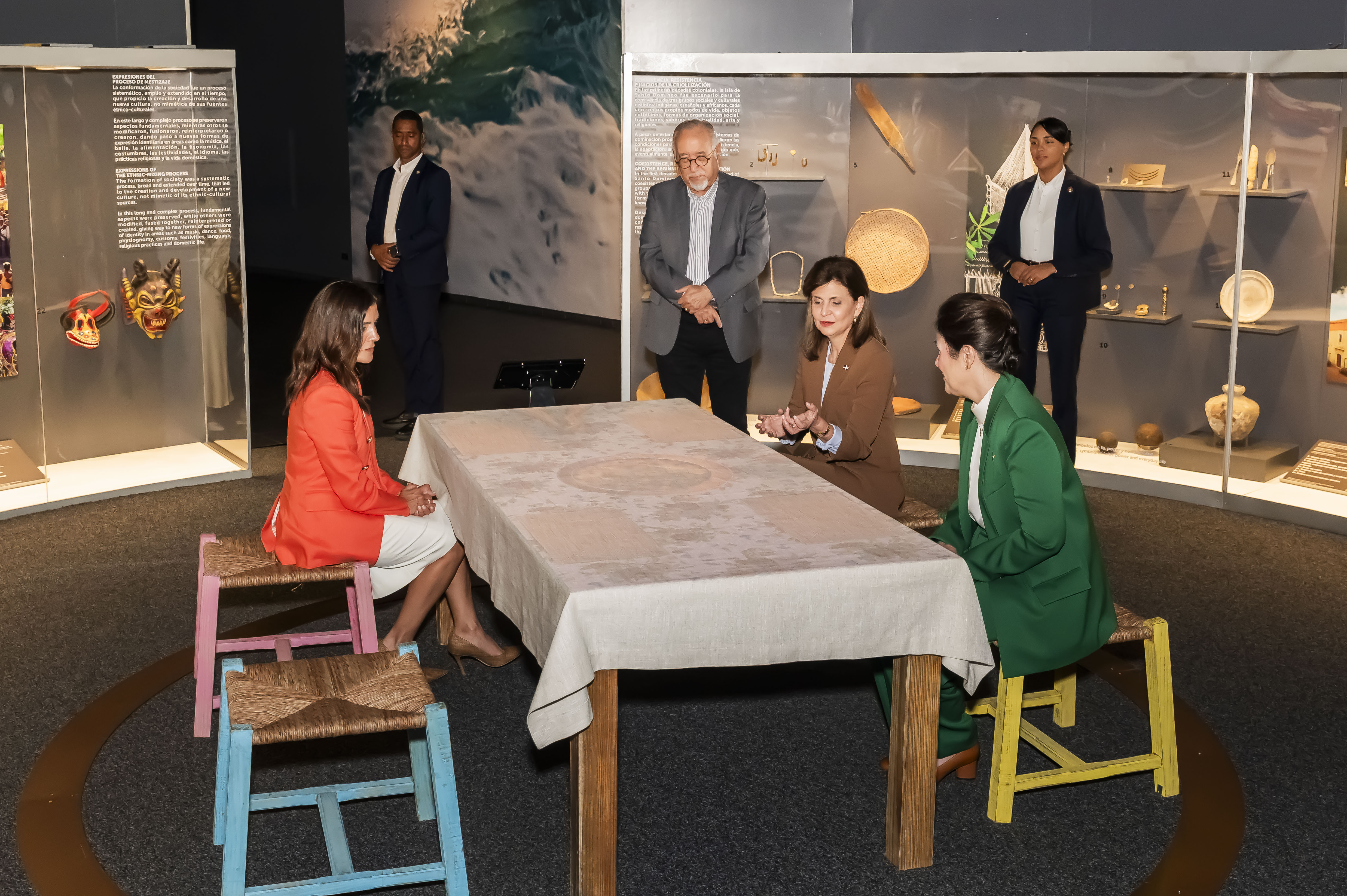 Las funcionarias fueron recibidas por María Amalia León, presidenta de la Fundación Eduardo León Jimenes y del Centro León; María Luisa Asilis, directora ejecutiva del Centro León; Luis Felipe Rodríguez, gerente de Programas Culturales; y Sara Hermann, curadora en jefe.