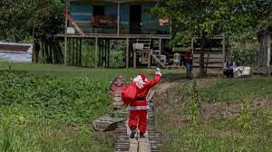 Este fin de semana, Santa Claus salió del gélido Polo Norte para visitar con gran alegría a residentes del sector El Millón en Santo Domingo, capital de la República Dominicana. Le acompañó una pequeña banda de música. Algunos vecinos salían obsequiando propinas, otros las lanzaban de sus terrazas o balcones.