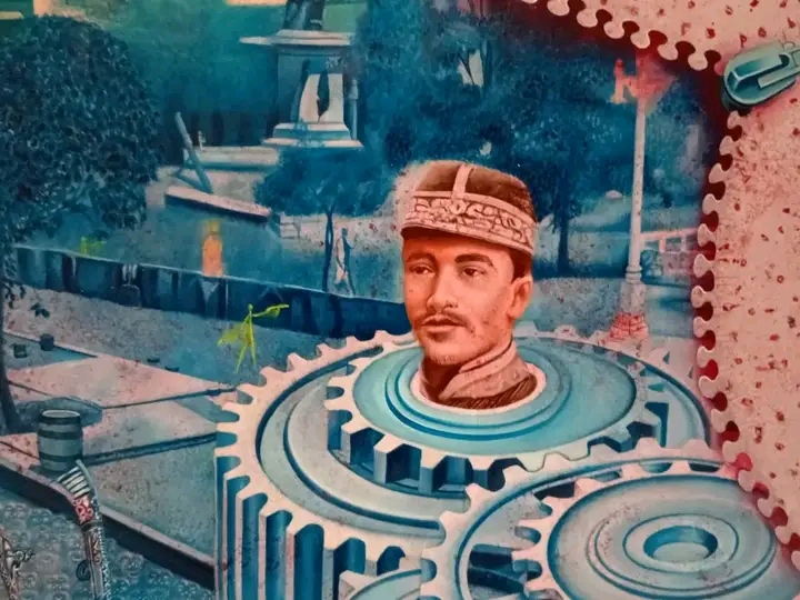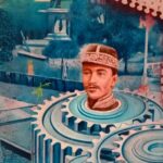 Deimos Daniel también es otro artista que participó en la muestra. Sus rostros de grandes ojos, el uso de la técnica del chorreado, la deformación y distorsión de la forma y las texturas ásperas en función de la expresividad, lo acercan al “art brut” para mostrar las realidades internas de los personajes retratados en un arte catártico de gran calidad artística.