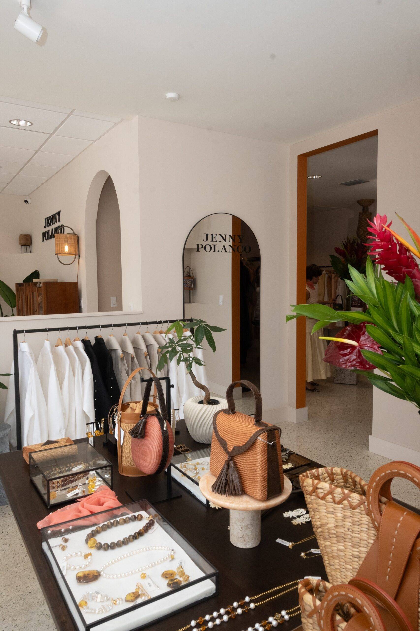 El diseño de la tienda estuvo a cargo del museógrafo y curador Orlando Isaac, quien realizó una interpretación de la esencia de la marca, capturando su carácter, feminidad, textura y expresión visual en una atmósfera que honra el legado y la identidad de Jenny Polanco.