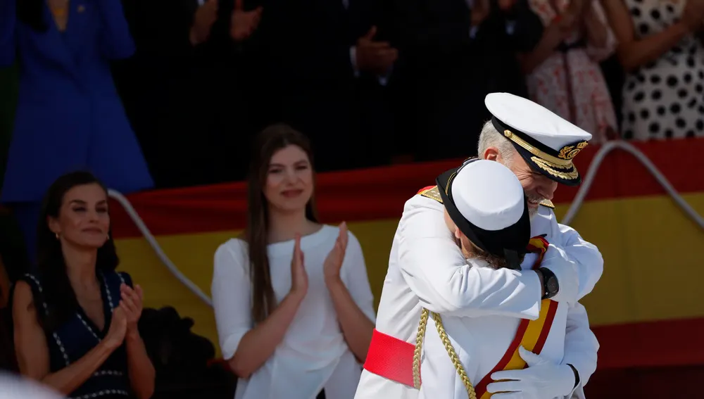 Tras ello, la heredera al trono de España abandonó filas y tomó asiento en la tribuna, al lado de sus padres. Desde allí, junto al resto de alumnos formados en la explanada cantaron la ‘Salve Marinera’.