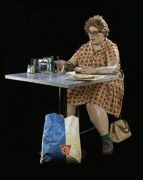 Duane-Hanson-Sculpture-Woman-Eating-Synthetic-Material-1971