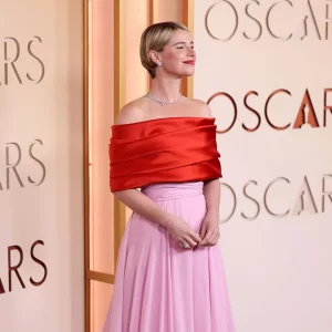 La ganadora a Mejor Actriz, quien se puso en los zapatos de Agnes Shakespeare en ‘Hamnet’ (2025), apareció con un vestido strapless de la maison francesa Chanel rojo y rosa, inspirado en uno usado por Grace Kelly’s. Lo acompañó con su cabello corto y suelto junto con joyería en plata minimalista: unos aretes, un anillo y una gargantilla