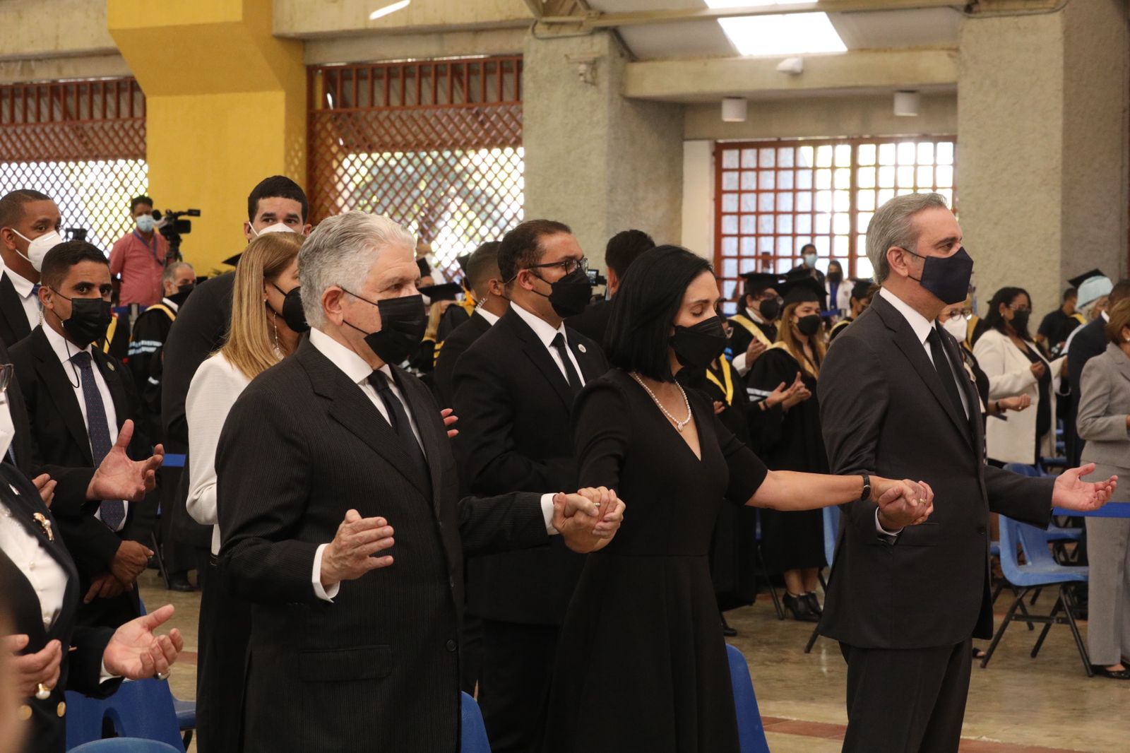 A su llegada al auditorio de la Pontificia Universidad Católica Madre y Maestra (PUCMM), junto a su esposa la Primera Dama Raquel Arbaje, el mandatario expresó sus condolencias a los familiares. El presidente del Senado y senador por Santiago, Eduardo Estrella, acompañó a la pareja presidencial.