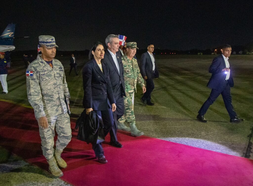 El mandatario arribó a suelo dominicano por la Base Aérea de San Isidro a las 10:00 de la noche, siendo recibido por el el comandante general de la Fuerza Aérea, mayor general técnico de Aviación Carlos Febrillet Rodríguez y el comandante de la Guardia Presidencial, general de brigada Guillermo Caro Cruz.