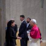 La vicepresidenta saludó al nuevo pontífice tras la ceremonia en la Plaza de San Pedro, junto a líderes de más de 150 delegaciones internacionales