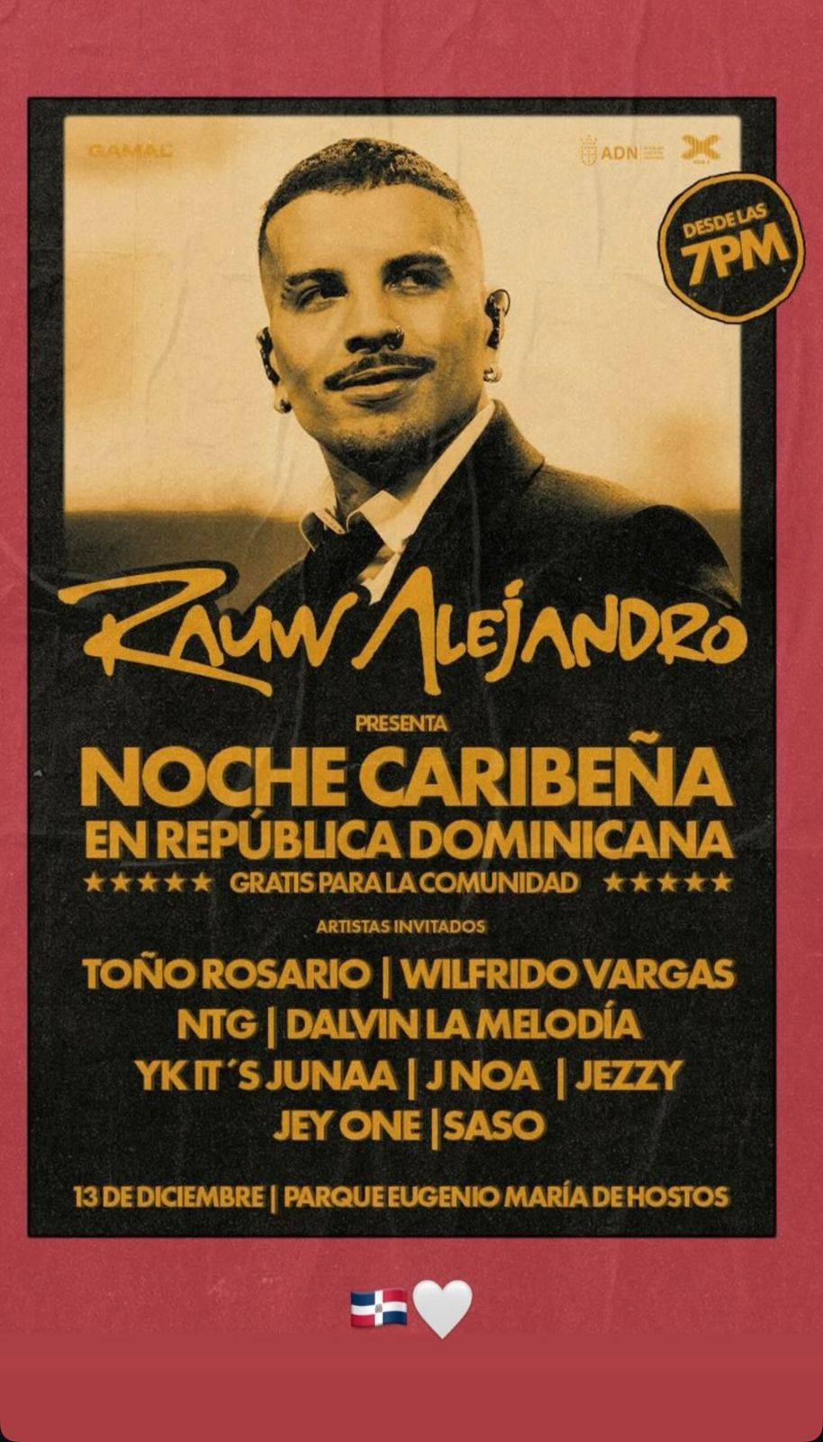 Llegó el día, 7:00 de la noche era la cita, previo se había anunciado ‘Una Noche Caribeña’, pero sin más detalles. Dias después se desvelaron los nombres de sus invitados: el maestro Wilfrido Vargas y el muy carismático Toño Rosario, no obstante, parte del público que salió a ver a Rauw Alejandro se desesperó por la espera y decidió retirarse del lugar. ¡Asunto generacional!