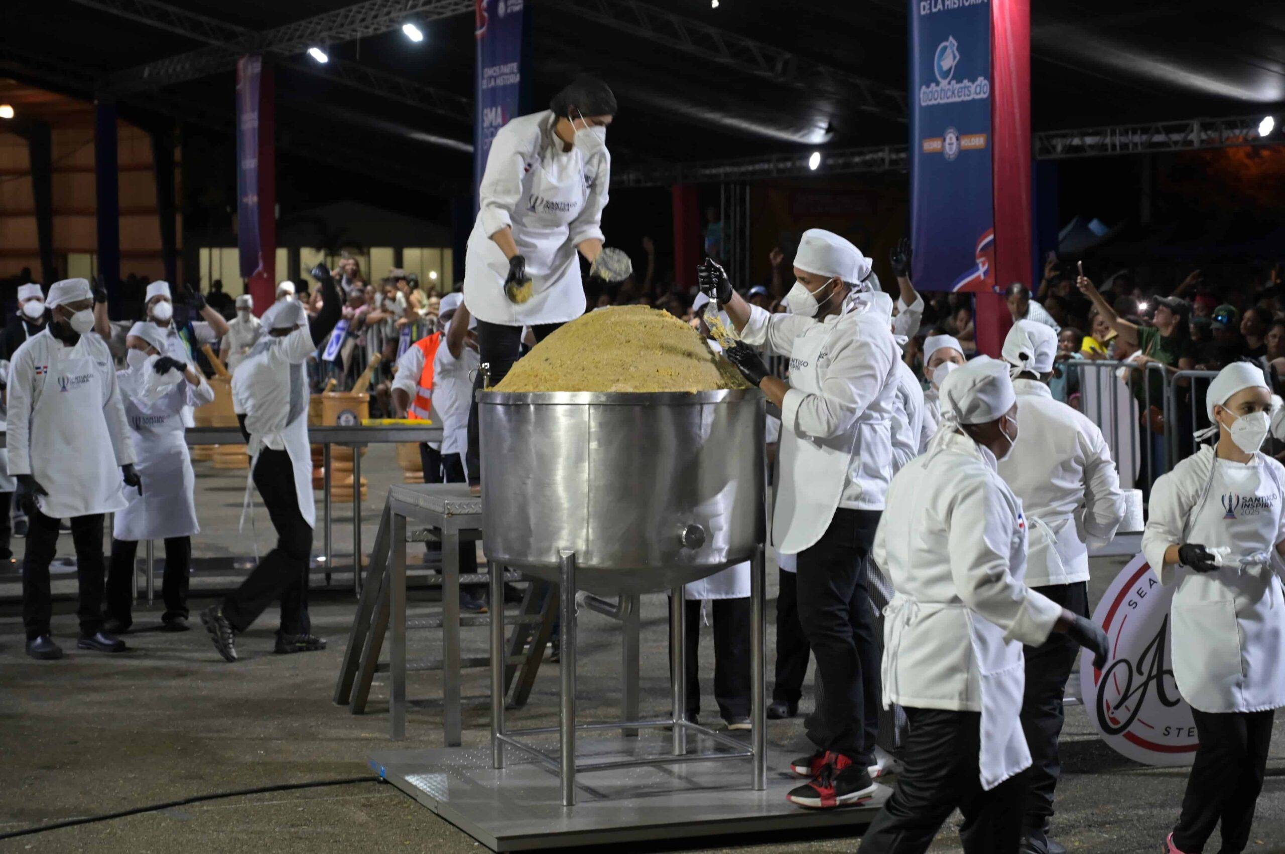 Se trata de una hazaña gastronómica que tomó forma con un gigantesco mofongo de 560 kilogramos, preparado en el parque central de Santiago de los Caballeros y lograda bajo la mirada atenta de cientos de personas y la evaluación oficial de Susana Reyes, adjudicadora internacional de Guinness World Records.